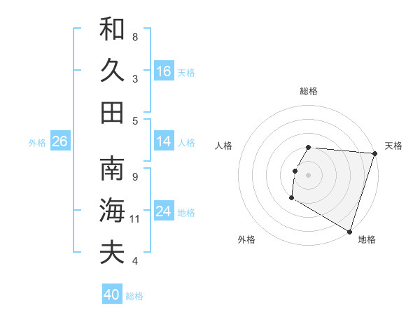 和久田 南海夫さんを姓名の画数から五運を鑑定