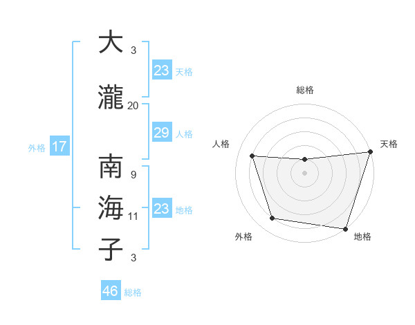 大瀧 南海子さんを姓名の画数から五運を鑑定