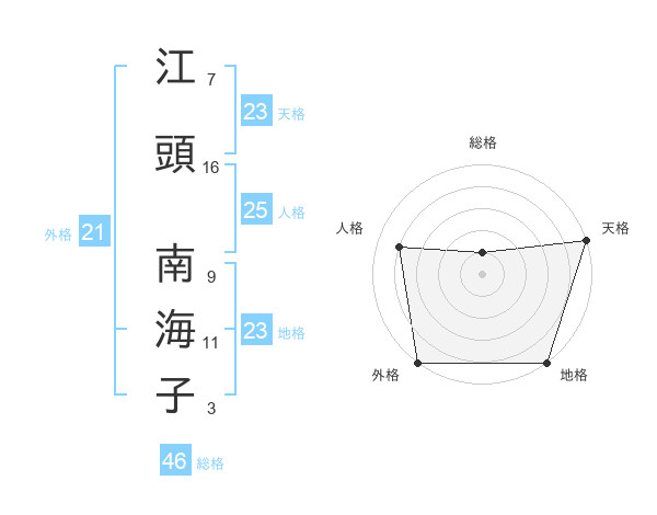 江頭 南海子さんを姓名の画数から五運を鑑定