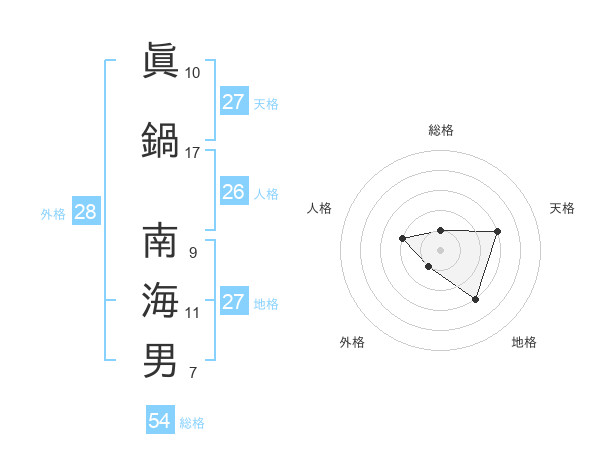 眞鍋 南海男さんを姓名の画数から五運を鑑定