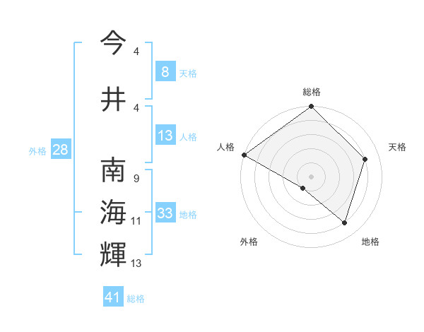 今井 南海輝さんを姓名の画数から五運を鑑定