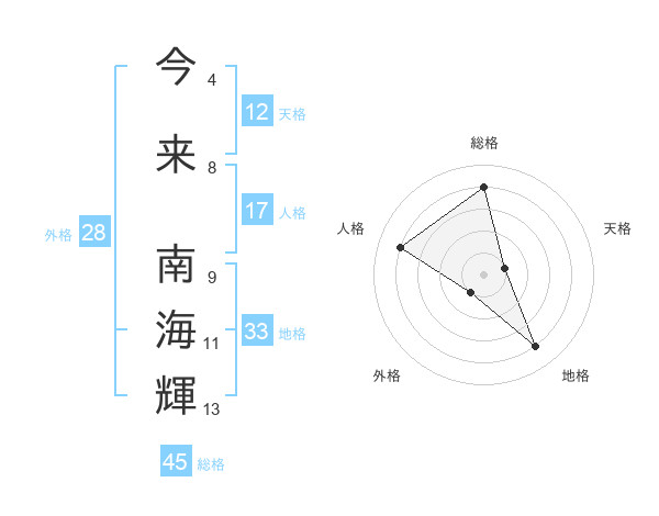今来 南海輝さんの地格は33画の4点!