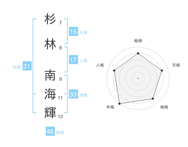 杉林 南海輝さんを姓名の画数から五運を鑑定