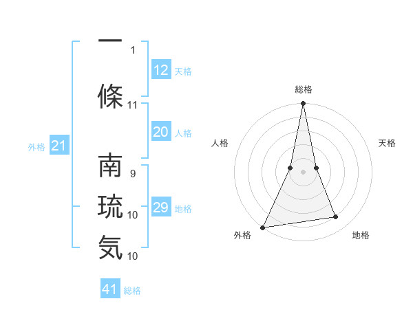 一條 南琉気さんの外格は21画の5点!