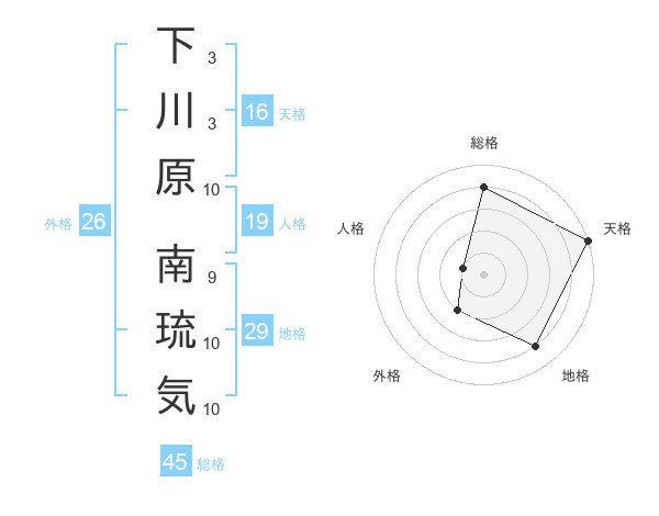 下川原 南琉気さんを姓名の画数から五運を鑑定