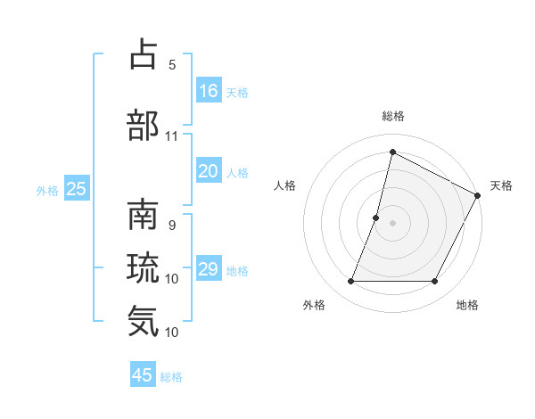 占部 南琉気さんの天格は16画の5点!
