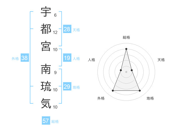 宇都宮 南琉気さんの外格は38画の4点!