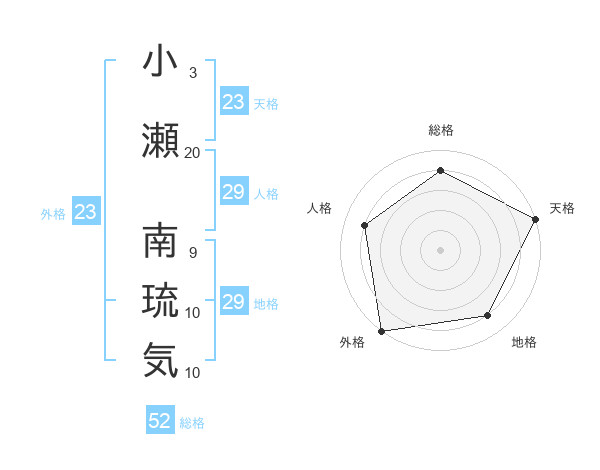 小瀬 南琉気さんを姓名の画数から五運を鑑定