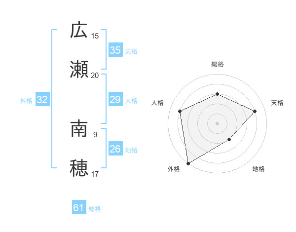 広瀬 南穂さんの総格は61画の3点!
