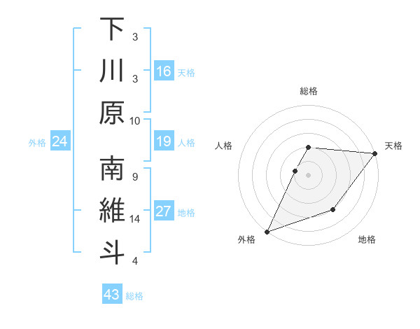 下川原 南維斗さんを姓名の画数から五運を鑑定