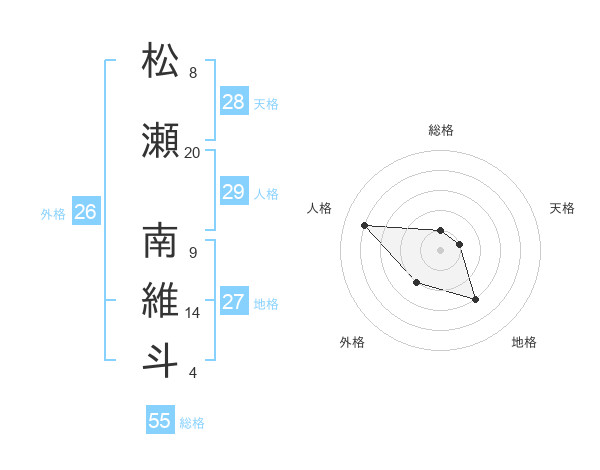 松瀬 南維斗さんを姓名の画数から五運を鑑定