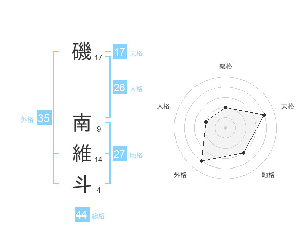 磯 南維斗さんの総格は44画の2点!