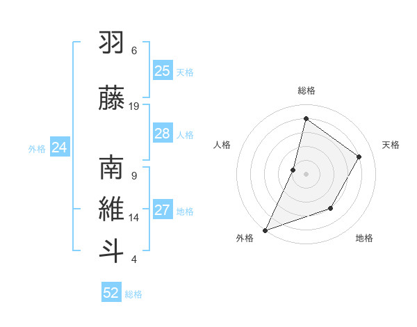 羽藤 南維斗さんの総格は52画の4点!
