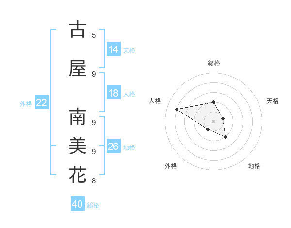 古屋 南美花さんを姓名の画数から五運を鑑定