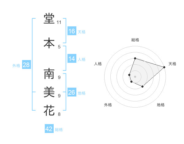 堂本 南美花さんの総格は42画の3点!