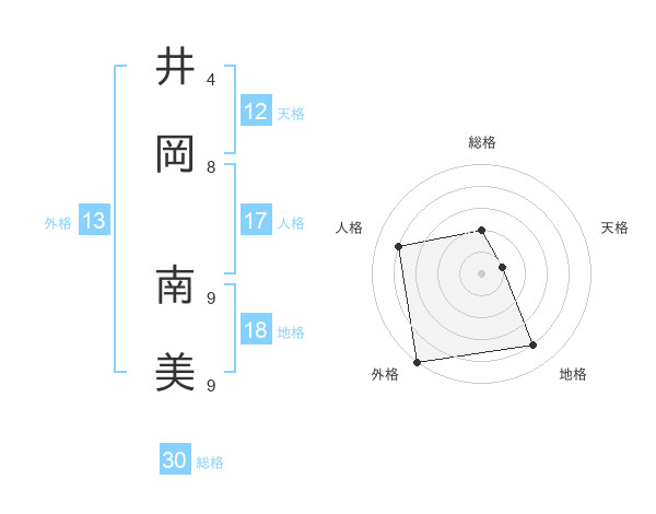 井岡 南美さんの外格は13画の5点!