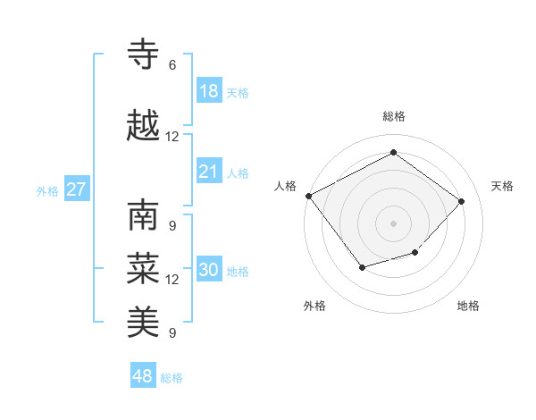 寺越 南菜美さんの外格は27画の3点!
