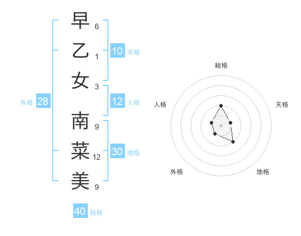 早乙女 南菜美さんの総格は40画の2点!