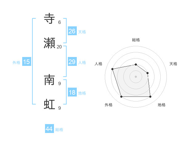 寺瀬 南虹さんを姓名の画数から五運を鑑定