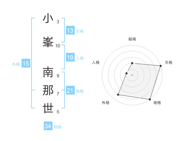 小峯 南那世さんを姓名の画数から五運を鑑定