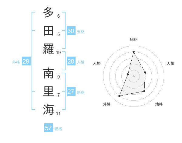 多田羅 南里海さんを姓名の画数から五運を鑑定