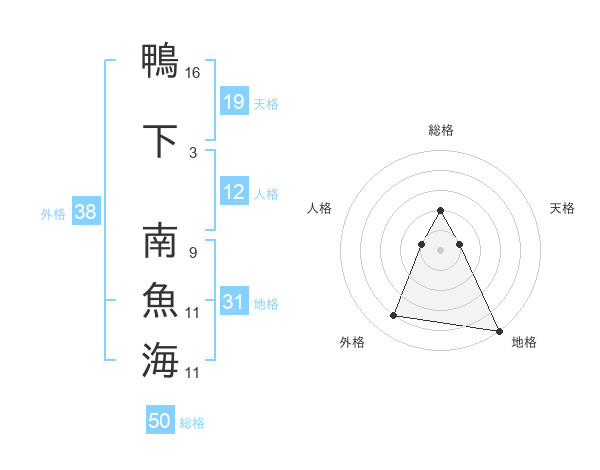 鴨下 南魚海さんの外格は38画の4点!