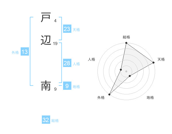 戸辺 南さんの外格は13画の5点!