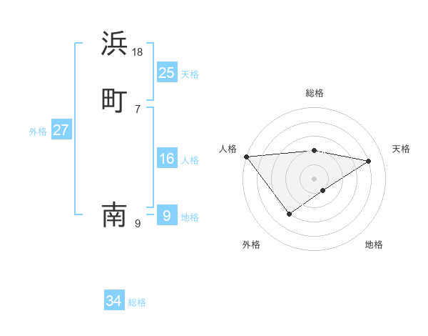 浜町 南さんの総格は34画の2点!