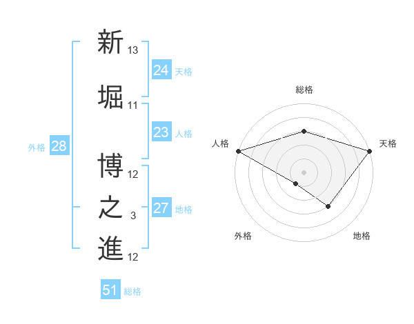 新堀 博之進さんを姓名の画数から五運を鑑定