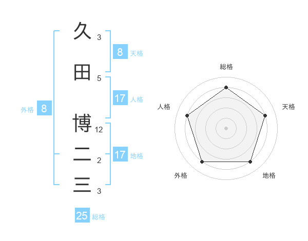 久田 博二三さんの総格は25画の4点!