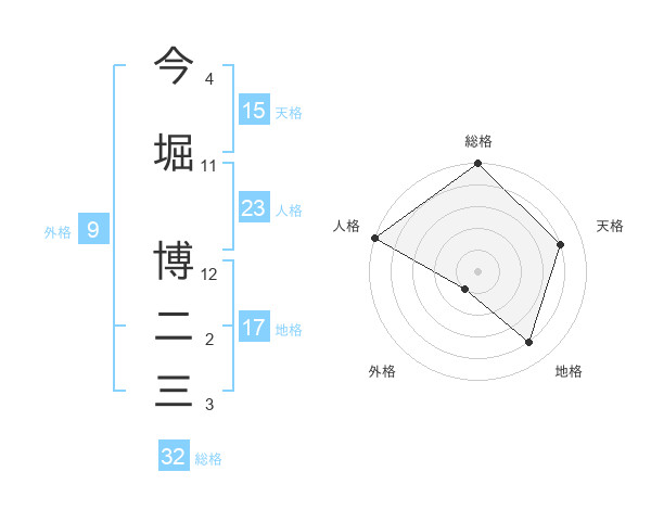 今堀 博二三さんの総格は32画の5点!