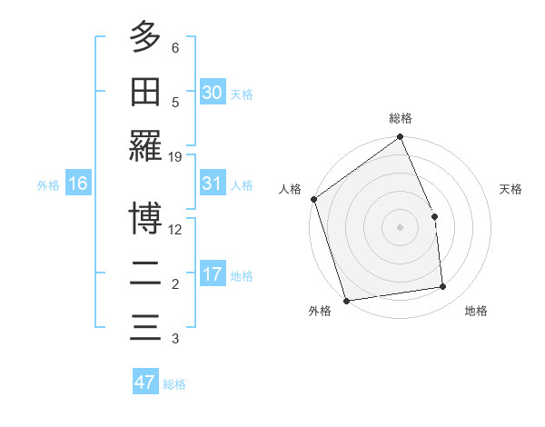 多田羅 博二三さんを姓名の画数から五運を鑑定