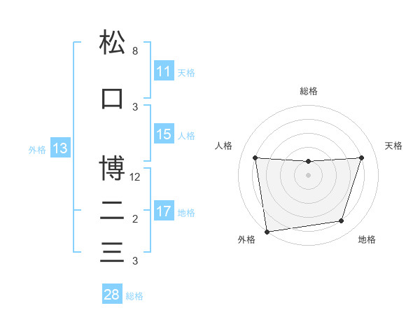 松口 博二三さんの外格は13画の5点!