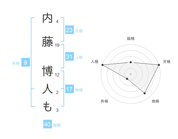 内藤 博人もさんの天格は23画の5点!