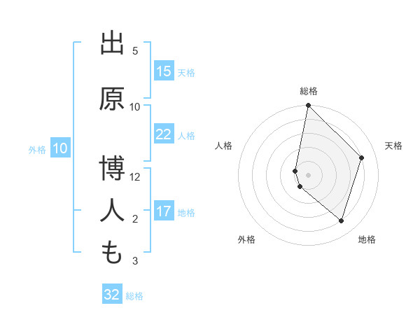 出原 博人もさんの地格は17画の4点!