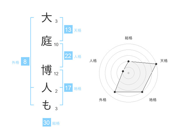 大庭 博人もさんの天格は13画の5点!