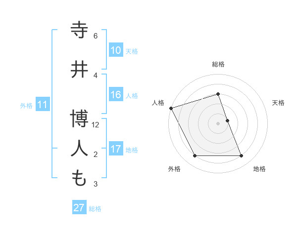 寺井 博人もさんを姓名の画数から五運を鑑定