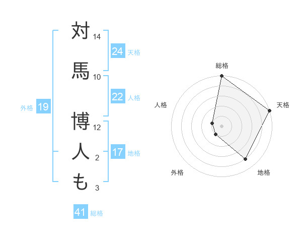 対馬 博人もさんを姓名の画数から五運を鑑定