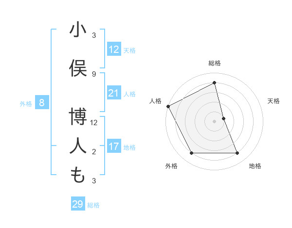 小俣 博人もさんの総格は29画の4点!