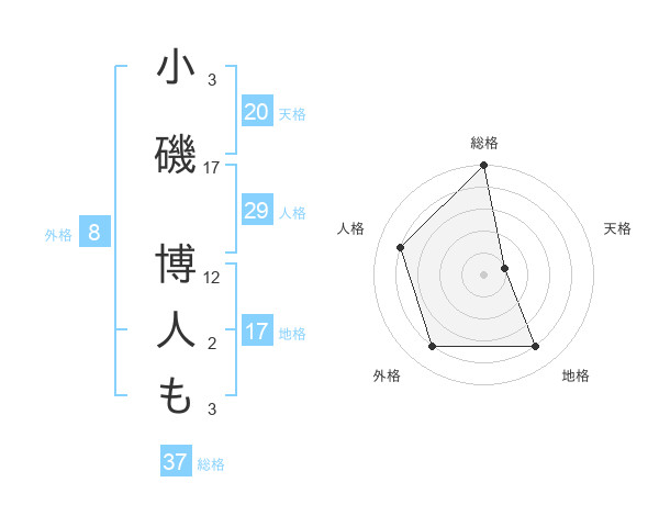 小磯 博人もさんの総格は37画の5点!