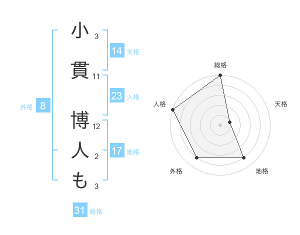 小貫 博人もさんを姓名の画数から五運を鑑定