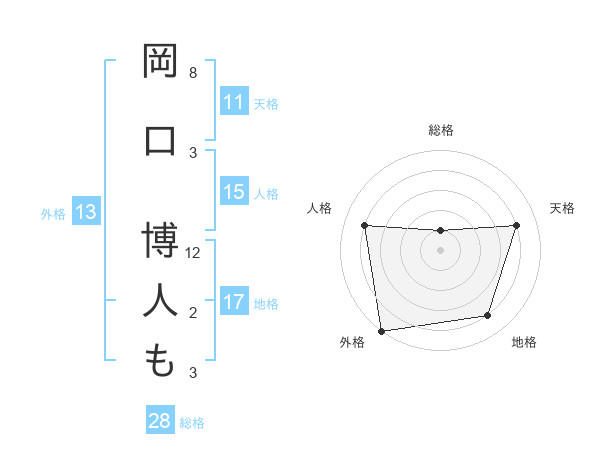 岡口 博人もさんを姓名の画数から五運を鑑定