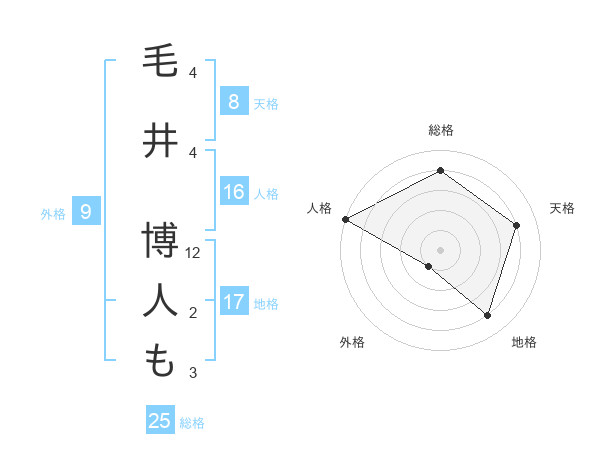 毛井 博人もさんの総格は25画の4点!