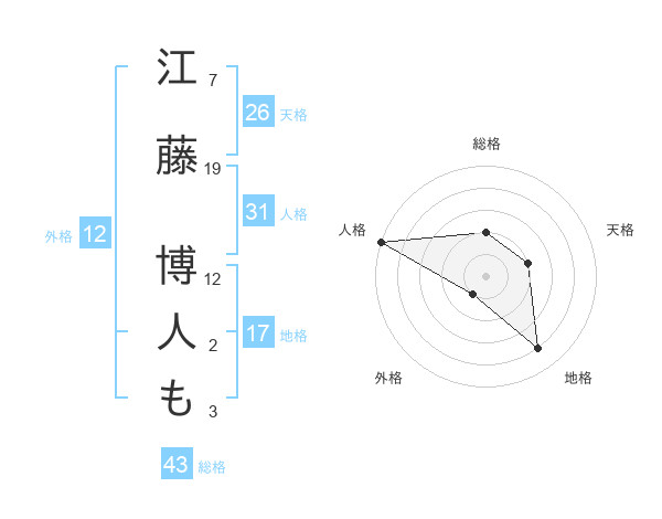 江藤 博人もさんの総格は43画の2点!