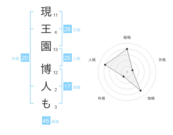 現王園 博人もさんの総格は45画の4点!