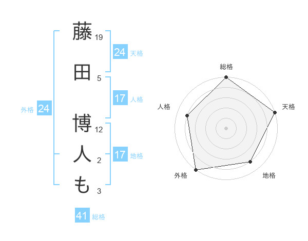 藤田 博人もさんを姓名の画数から五運を鑑定