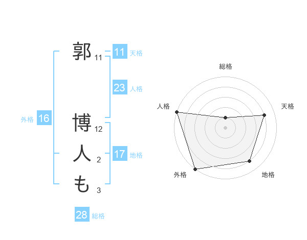 郭 博人もさんの総格は28画の1点!