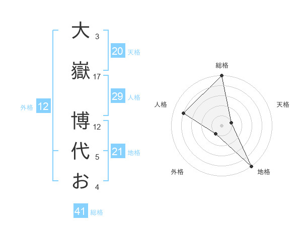 大嶽 博代おさんを姓名の画数から五運を鑑定