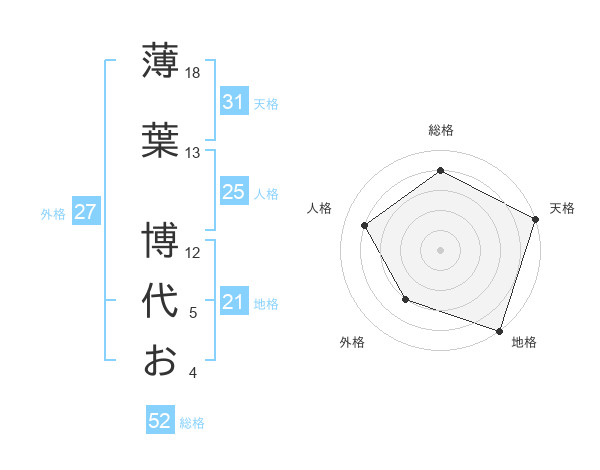薄葉 博代おさんを姓名の画数から五運を鑑定