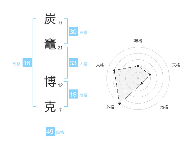 炭竈 博克さんを姓名の画数から五運を鑑定